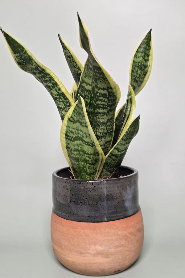 Wheel thrown plant pot with snake plant